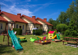 Przy każdym z domków jest komplet mebli ogrodowych z parasolem, grill, leżaki i parawan. Dla dzieci oferujemy duży plac zabaw z huśtawką oraz piaskownicę, krzesełko, wanienka i łóżeczko turystyczne. Cały teren jest ogrodzony z możliwością bezpłatnego parkowania samochodu.